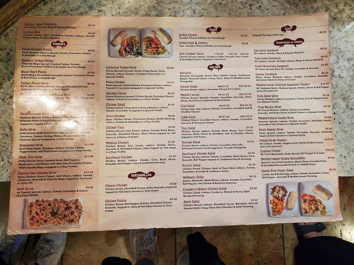 Menu favorites like the Mediterranean Salad, with its bright mix of feta and olives, or the savory Chicken Fajitas quesadilla speak to a taste for well-made, simple dishes designed to feel familiar yet thoughtfully prepared. The Soup of the Day adds a warming option ideal for cooler days or when you want something light but comforting.